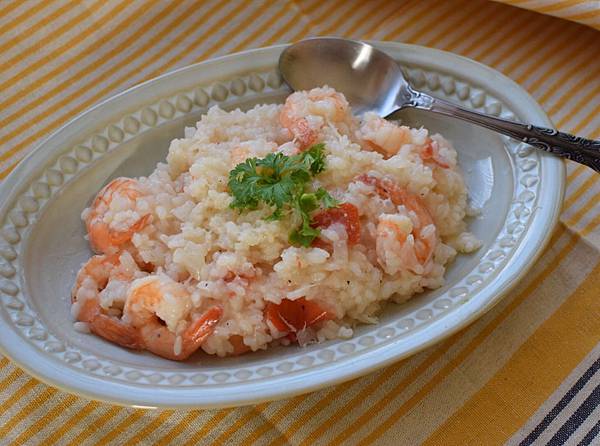 朋友也順手做了道義大利鮮蝦燉飯,相當法式的氛圍,